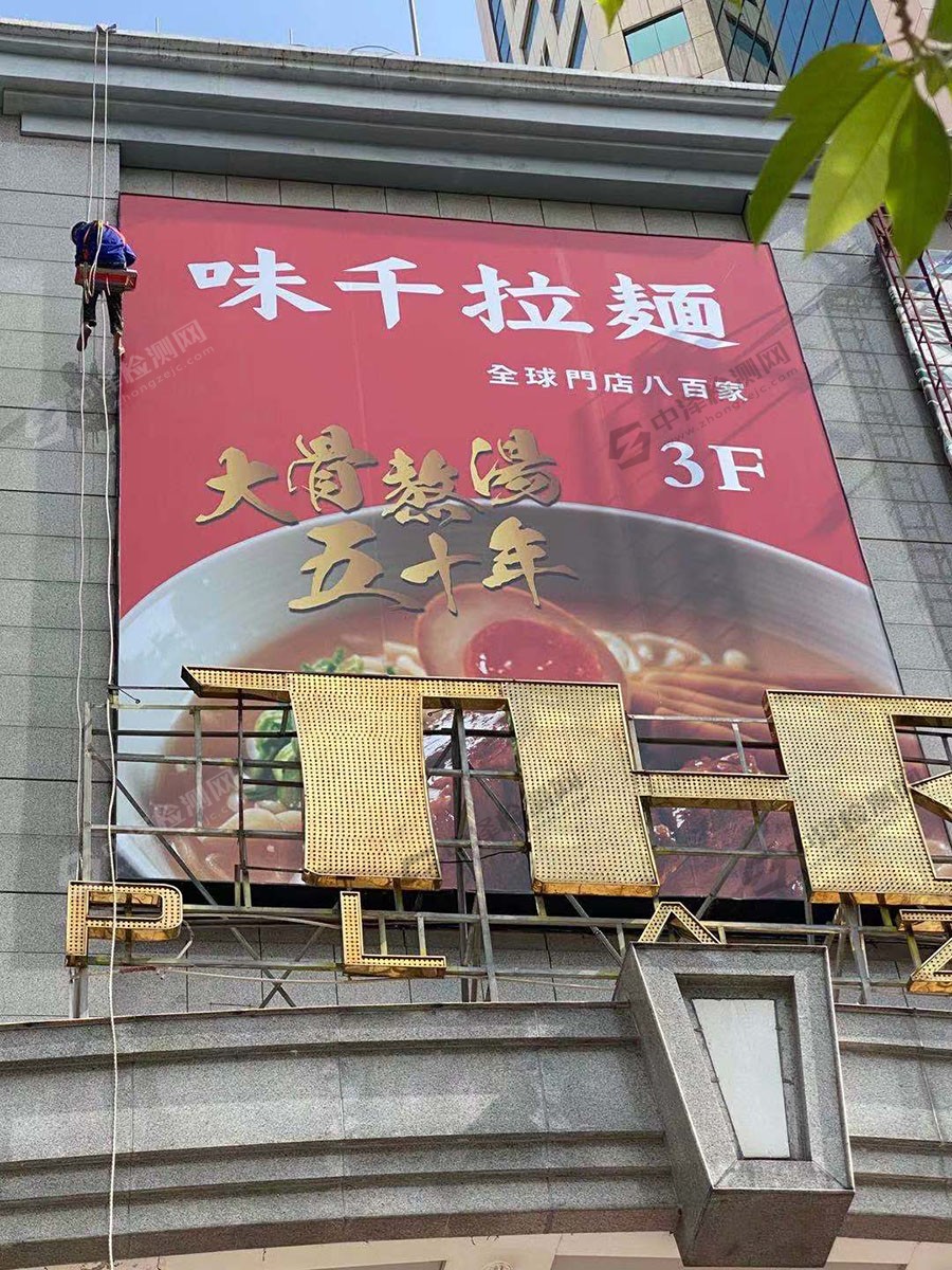 该百货公司墙体广告牌需要进行系统的广告牌安全检查,以杜绝广告牌存在安全隐患,本次广告牌鉴定检测项目用时1个工作日,由2位广告牌安全检测工程师高空进行检测。