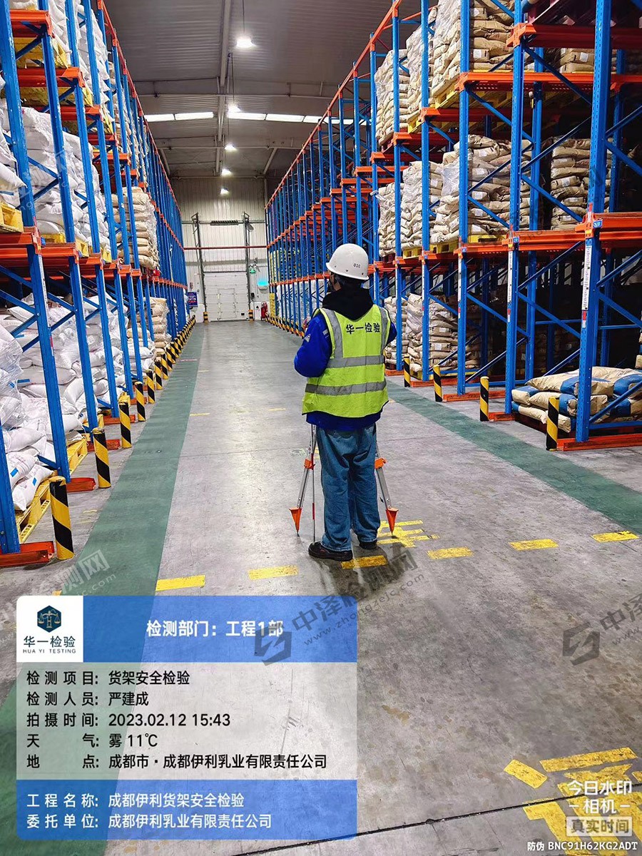 该企业正在使用的钢货架承重,垂直度需要进行安全检验,以杜绝可能存在的货架风险安全隐患,本次货架检验项目用时2个工作日,由1位货架安全检测工程师进行检测。