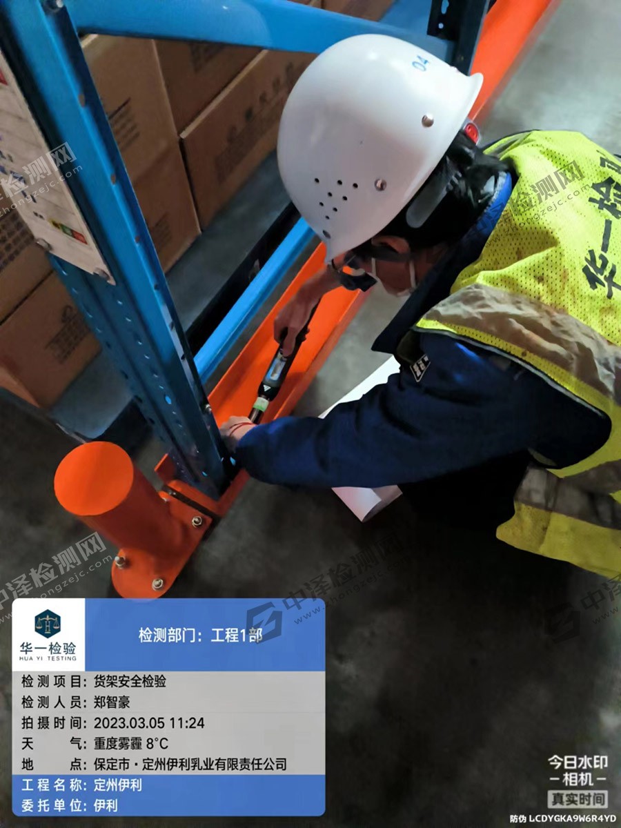 该企业正在使用的立体货架需要进行货架安全检验,以杜绝可能存在的货架风险安全隐患,本次货架检验项目用时2个工作日,由1位货架安全检测工程师进行检测。