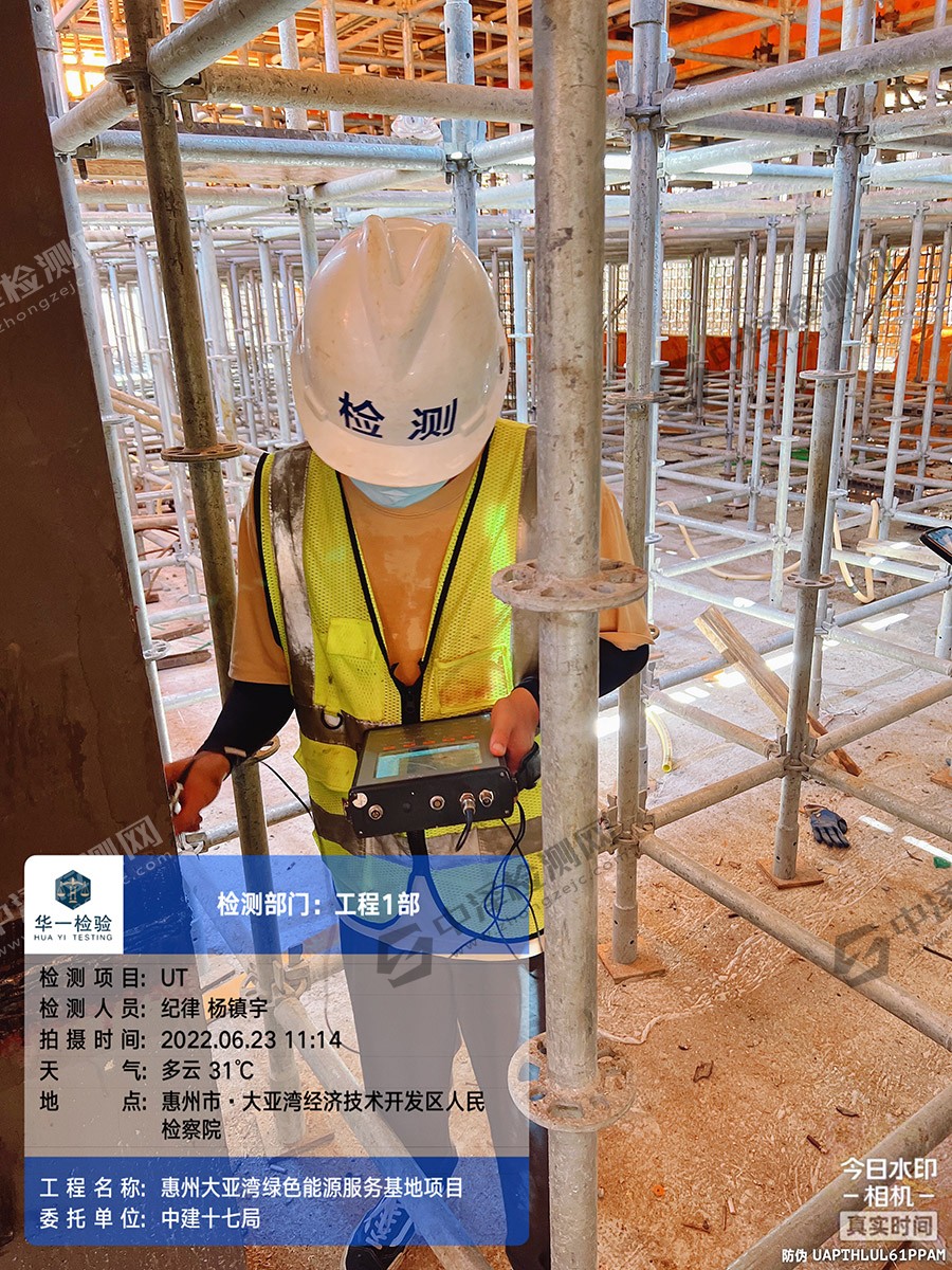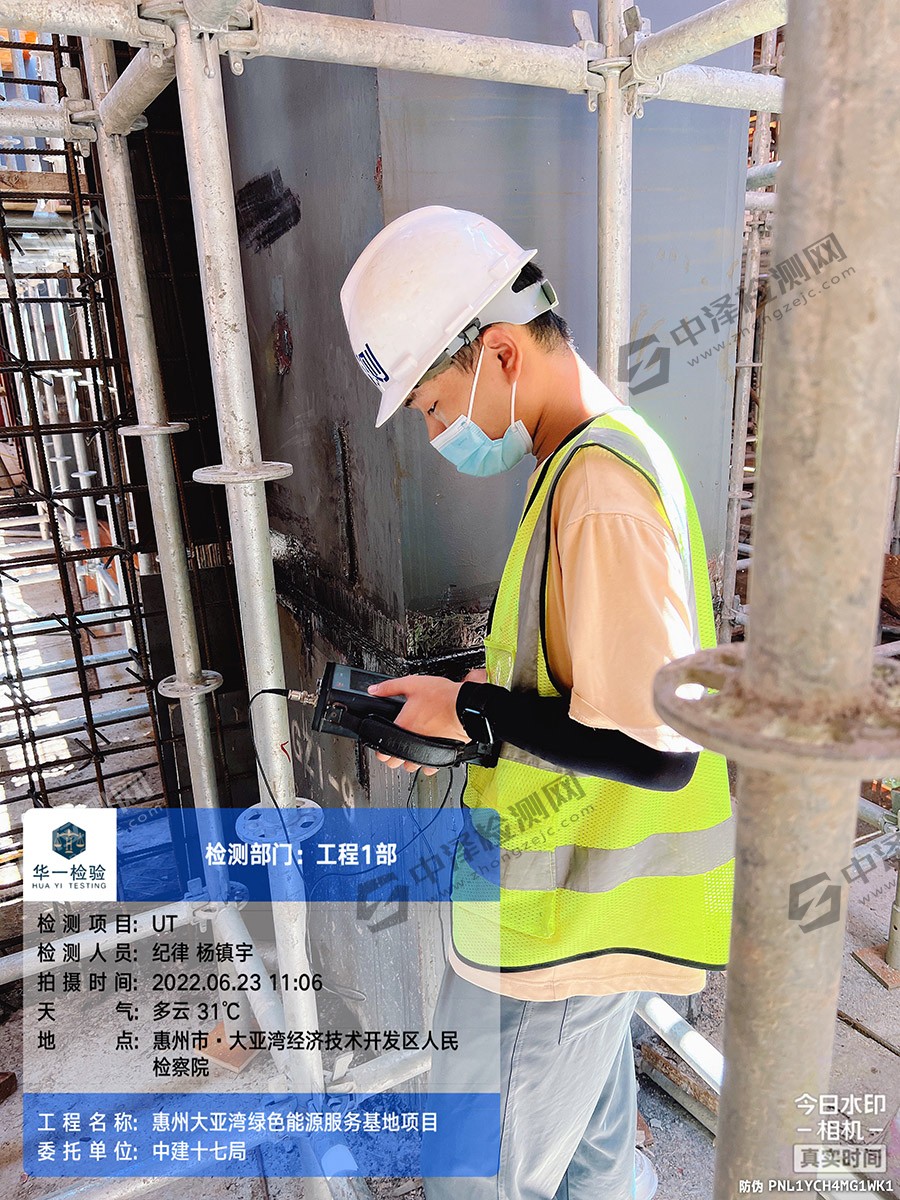 对钢柱焊缝进行无损检测,发现缺陷与问题,判断其是否需要修补和处理,本次无损探伤检测项目用时1个工作日,由2位无损探伤检测工程师进行检测。