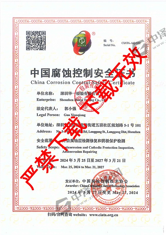 中国腐蚀控制安全证书